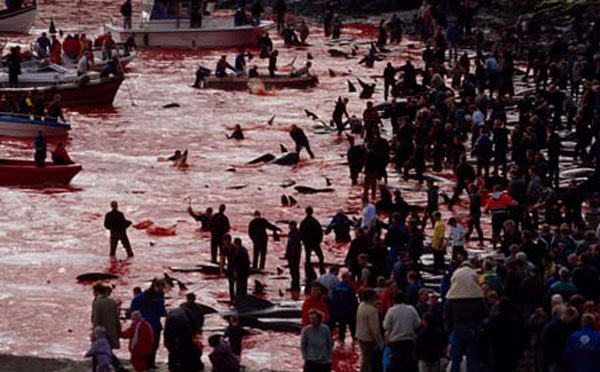 ဒိန္းမတ္ႏိုင္ငံက Feroe Island ရွိ ပင္လယ္ျပင္ၾကီး ေသြးခ်င္းခ်င္းနီေနတာဟာ ရာသီဥတုအေျပာင္း အလဲတခုေၾကာင့္ေတာ့ မဟုတ္ပါဘူး..အင္မတန္မွ လိမၼာယဥ္ေက်းတဲ့ လင္းပိုင္ ရာေပါင္းမ်ားစြာကို သတ္ျဖတ္ေနလို႔ ျဖစ္ေပၚလာတဲ့ ေသြးပင္လယ္ႀကီးပါ… နွစ္စဥ္ႏွစ္တိုင္းသတ္ျဖတ္ေနၾကတာျဖစ္ၿပီး အဓိက ပါ၀င္သတ္ျဖတ္သူေတြကေတာ့ လူငယ္ေတြလို႔ဆိုပါတယ္… လာေရာက္သူအားလုံးဟာ တနည္းမဟုတ္ တနည္းနည္းနဲ႔ ဒီရက္စက္မႈႀကီးမွာ ပါ၀င္ေနၾကတာျဖစ္ၿပီး…. အခုလိုသတ္ျဖတ္တဲ့ ရည္ရြယ္ခ်က္ကေတာ့ သူတို႔ဟာ အရြယ္ေရာက္လာၿပီ ရင့္က်က္လာၿပီဆိုတာကို ျပသဖို႔လို႔ ဆိုပါတယ္… လူေတြနဲ႔ရင္းႏွီးကၽြမ္း၀င္