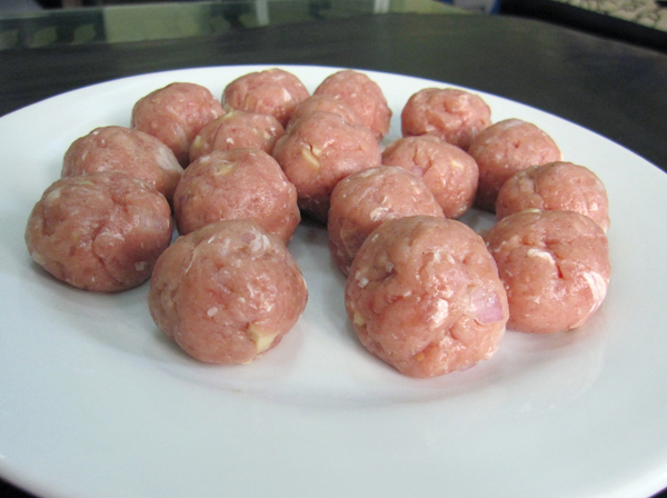၂။ ျပီလွ်င္ နုယ္ထားေသာ ၀က္သားမ်ားကို အေနေတာ္ အလံုးေလးမ်ား လံုးလုိက္ပါ။