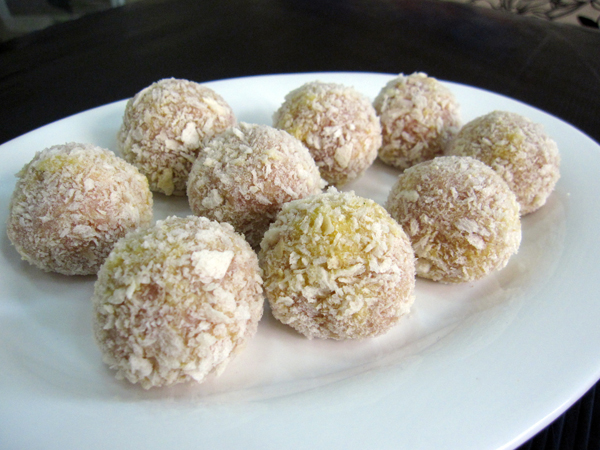 ၃။ ျပီမွ ျပီးလွ်င္ ပန္းကန္ျပားတစ္ခုထဲ ဂ်ဳံမွုန္႔မ်ားထည္႔ျပီး ၀က္သားလံုးမ်ားကို ဂ်ဳံကပ္ေပးပါ။